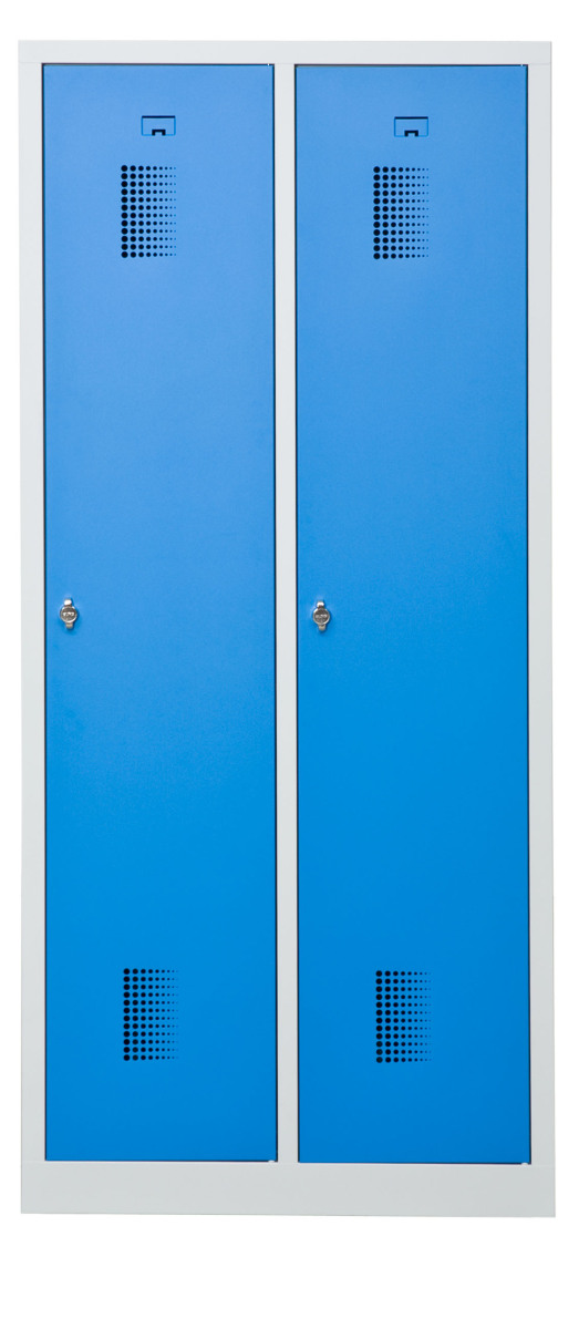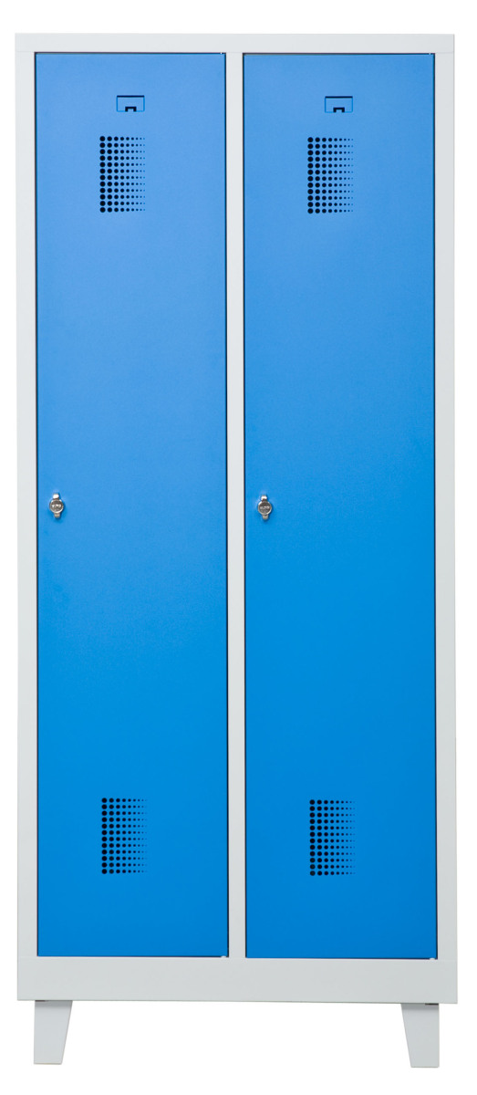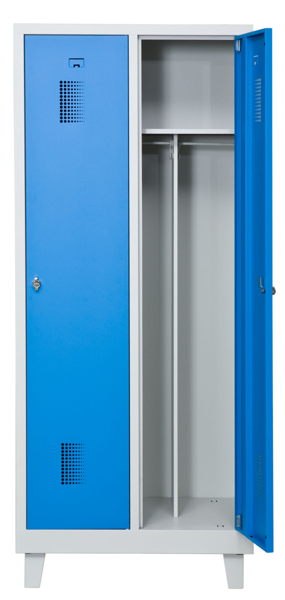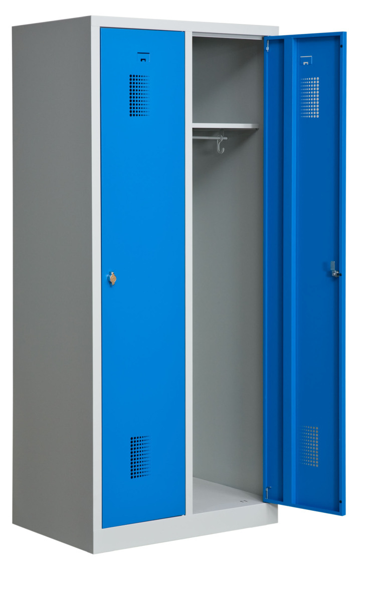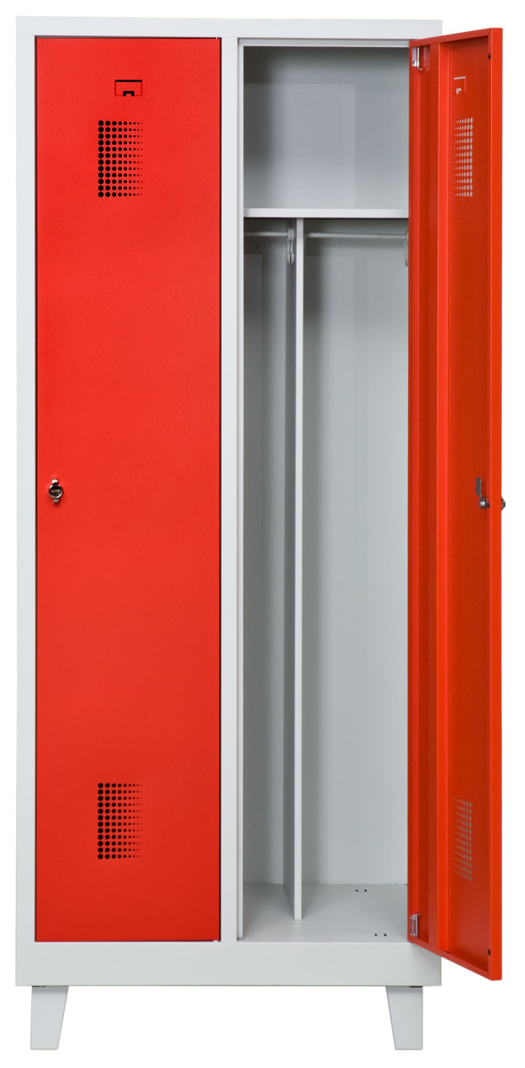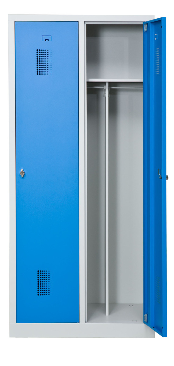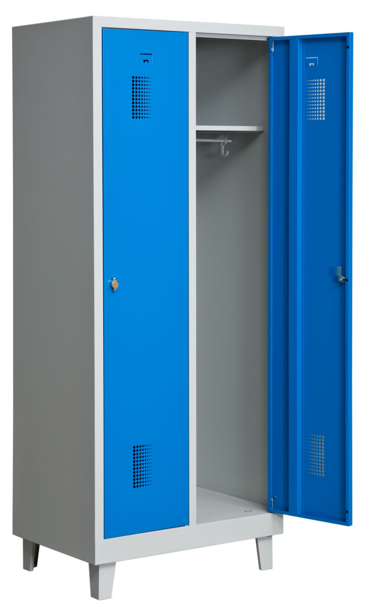 Klädskåp med två dörrar. Låsning med hänglås.