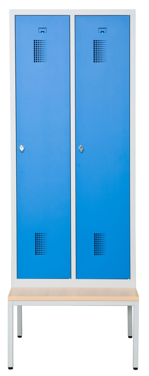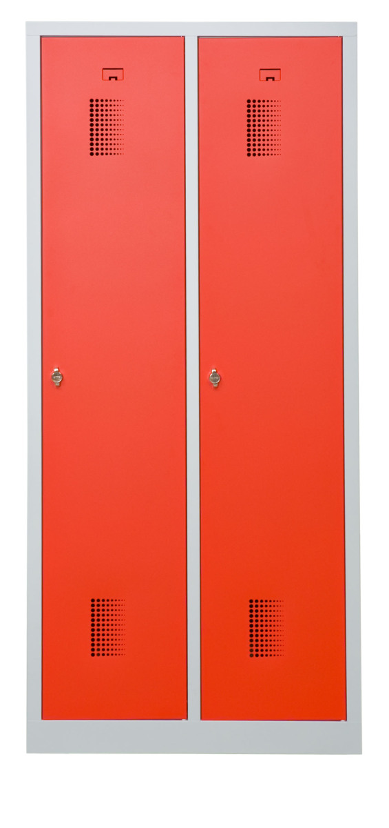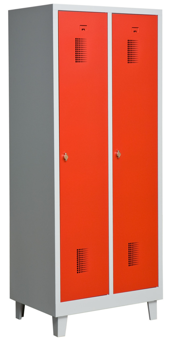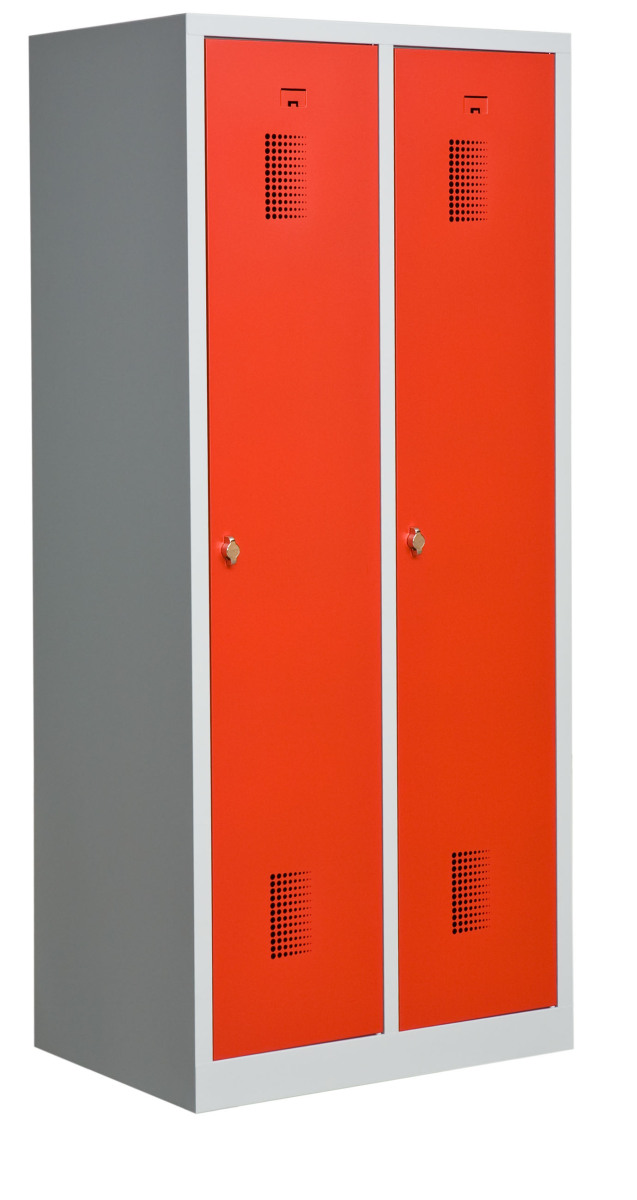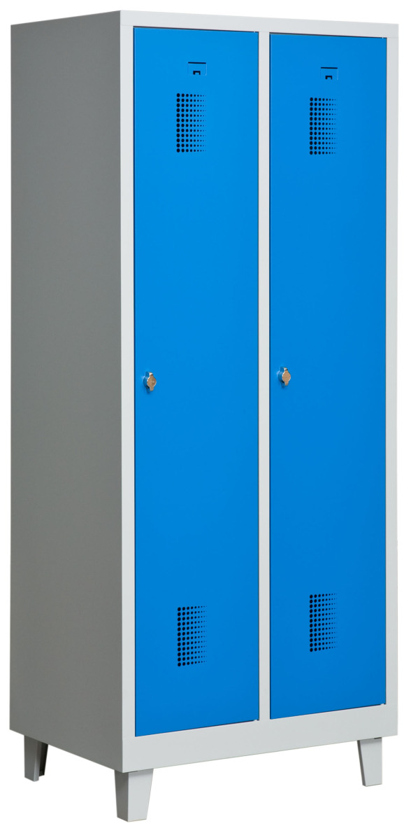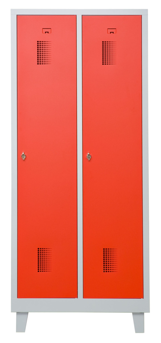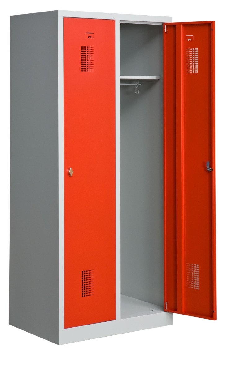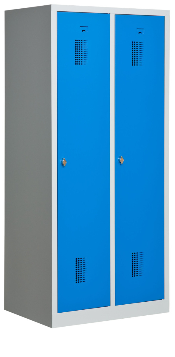Klädskåp med två dörrar. Låsning med hänglås.